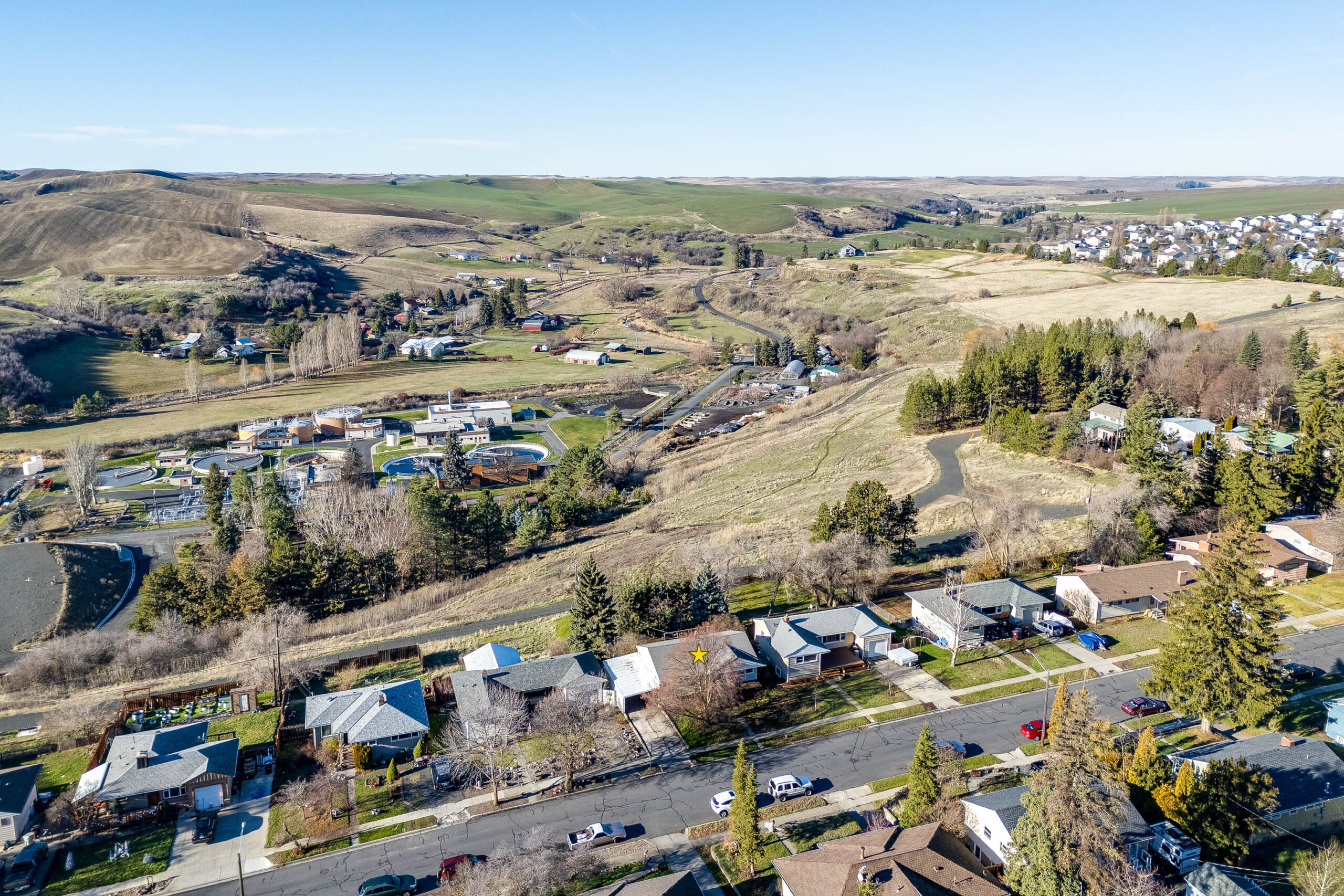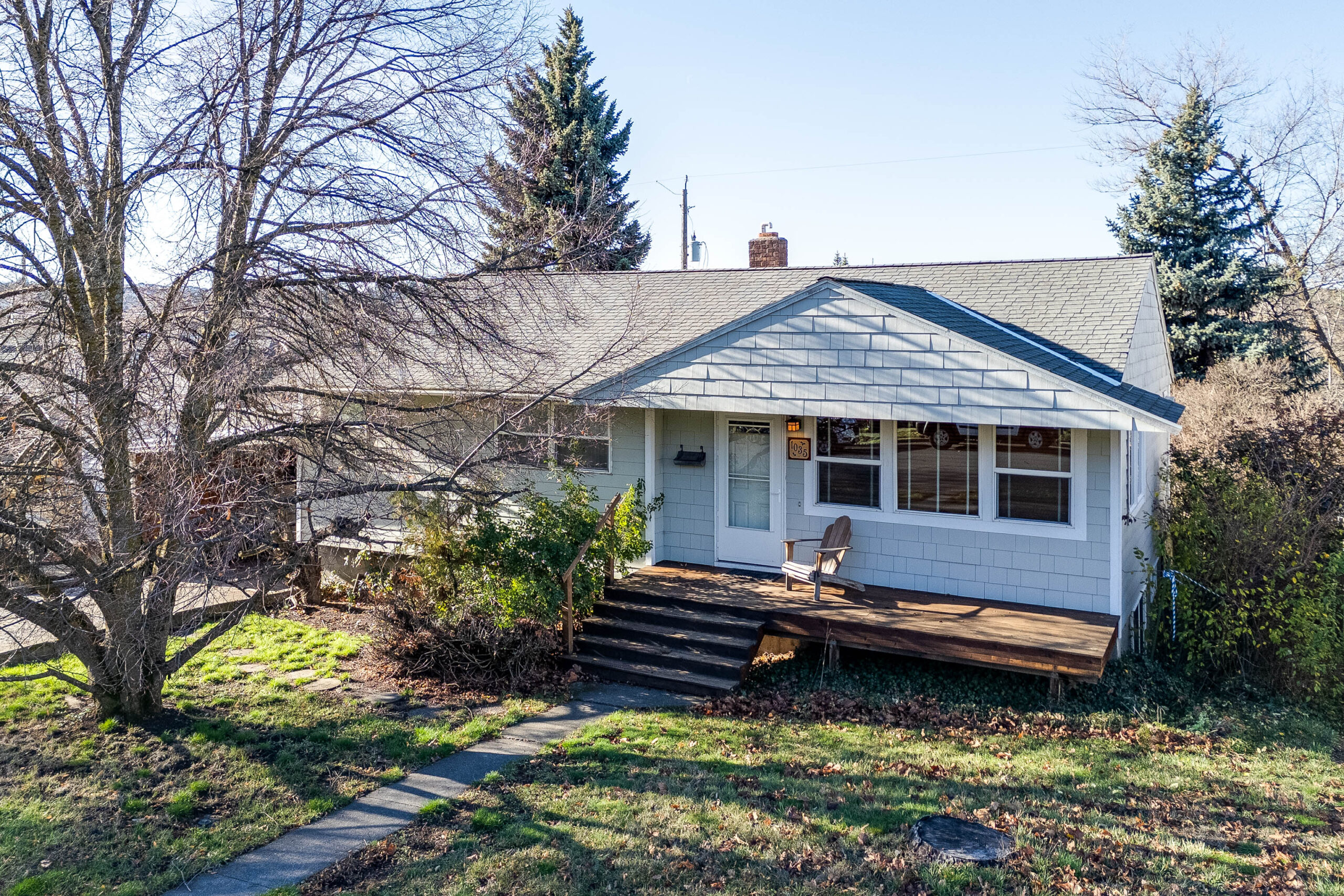 Welcome to this charming 1950s vintage home ideally located on Pullman’s desirable Military Hill—tucked into a quiet, established neighborhood with mature trees, exceptional privacy, and no neighbors behind. Set on a rare lot and a half, this property offers an expansive backyard that backs directly to a walking trail, creating a peaceful, park-like setting. The main level features three bedrooms, a full bathroom, a cozy living room, and a bright eat-in kitchen, offering a functional and inviting layout. The finished basement adds valuable bonus living space, including a large den, non-egress bedroom, second full bathroom, and an oversized utility/laundry/storage room. Outdoor living shines with a large back deck perfect for entertaining, relaxing, or enjoying fabulous sunset views. The backyard includes a fully fenced section, making it ideal for pets, play, or gardening, while still offering ample open space to customize. With vintage character, generous lot size, trail access, privacy, and flexible living spaces, this home offers the perfect blend of charm, comfort, and location—just minutes from downtown Pullman, WSU, parks, and amenities.