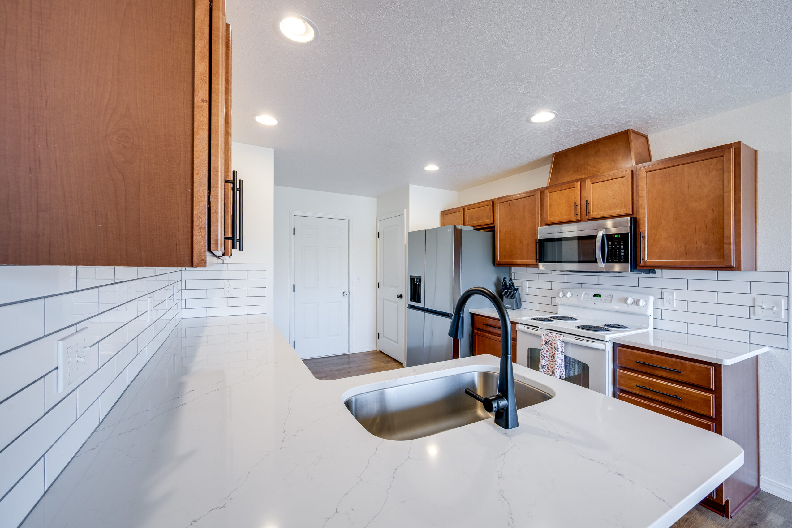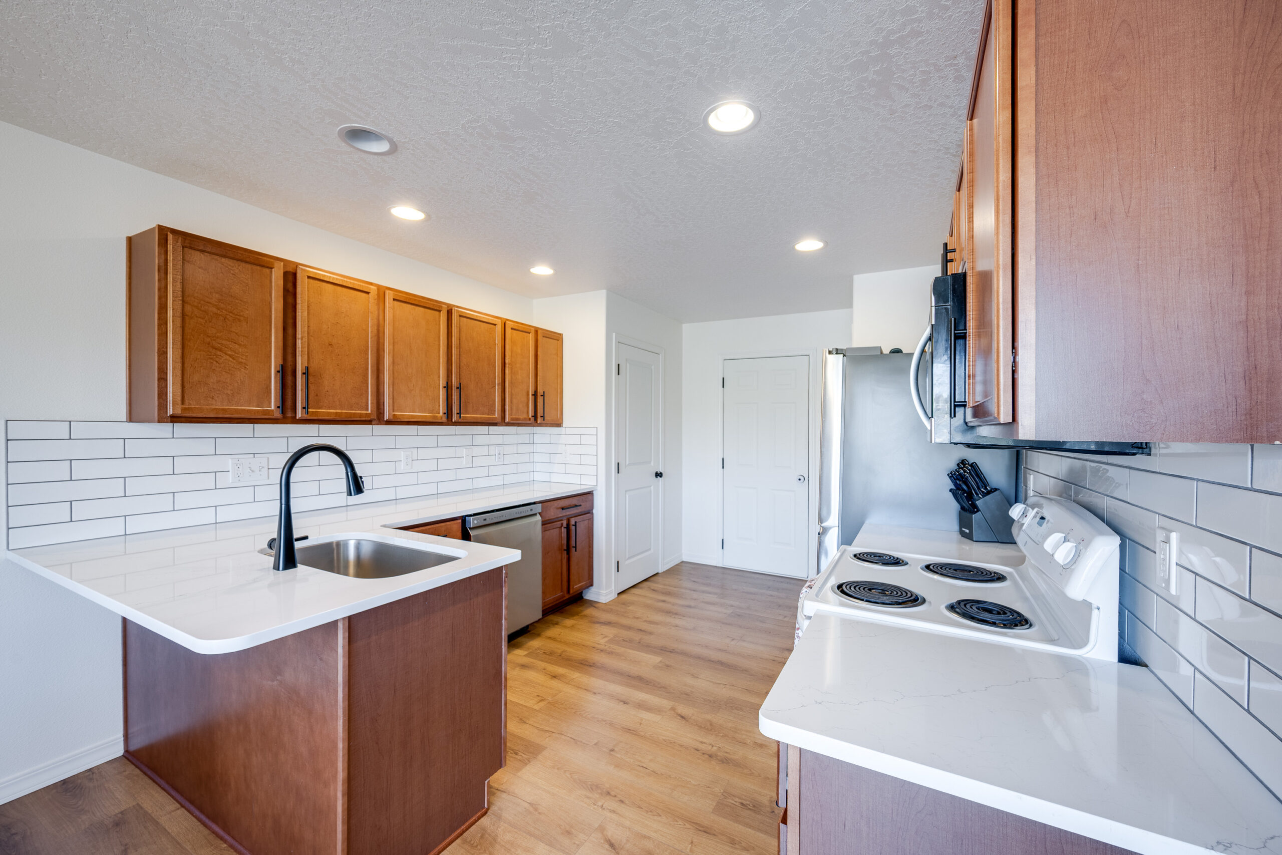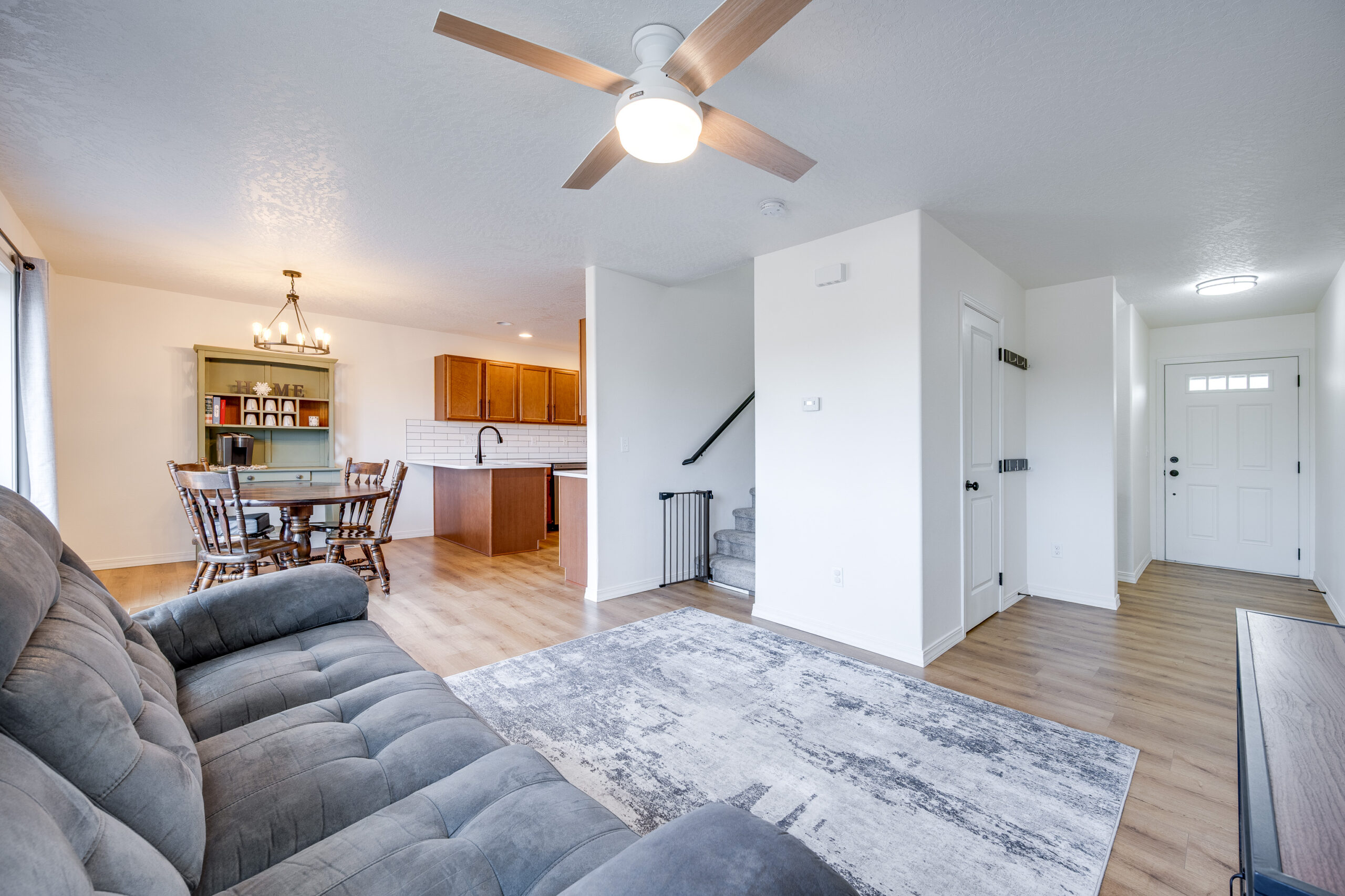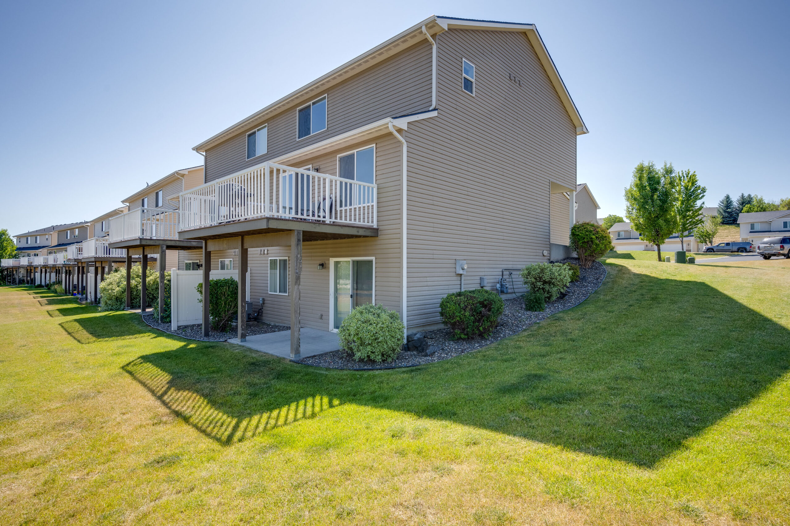 This lovely townhome has been updated with new flooring, kitchen counters and backsplash, light fixtures and many other tasteful upgrades. Located on a corner lot next to a spacious green space and steps from walking paths sits this fantastic 4 bedroom, 3.5 bath home! The convenient layout makes great use of the space on all 3 levels. As you enter the home you will find the living room as well as a half bath. The kitchen and dining area are just around the corner and feature a newer appliances. From the dining area is a walk out slider to the deck, the perfect place to enjoy outdoor living. On the upper level you will find 2 spacious bedrooms, both with generous closets. A full bath is also located on this level. In addition, the primary suite is large with a walk-in closet, dual sink vanity and lots of storage space. The lower level boasts a bonus room, ideal for a home gym, office or a second living space. You can also walk out to your covered patio from the family room slider. There is a 4th bedroom and full bath, perfect for visitors! The laundry room and oversized storage room completes the lower level. The lawn maintenance is included in the low HOA fee. All this located near Sunnyside elementary school and Park.