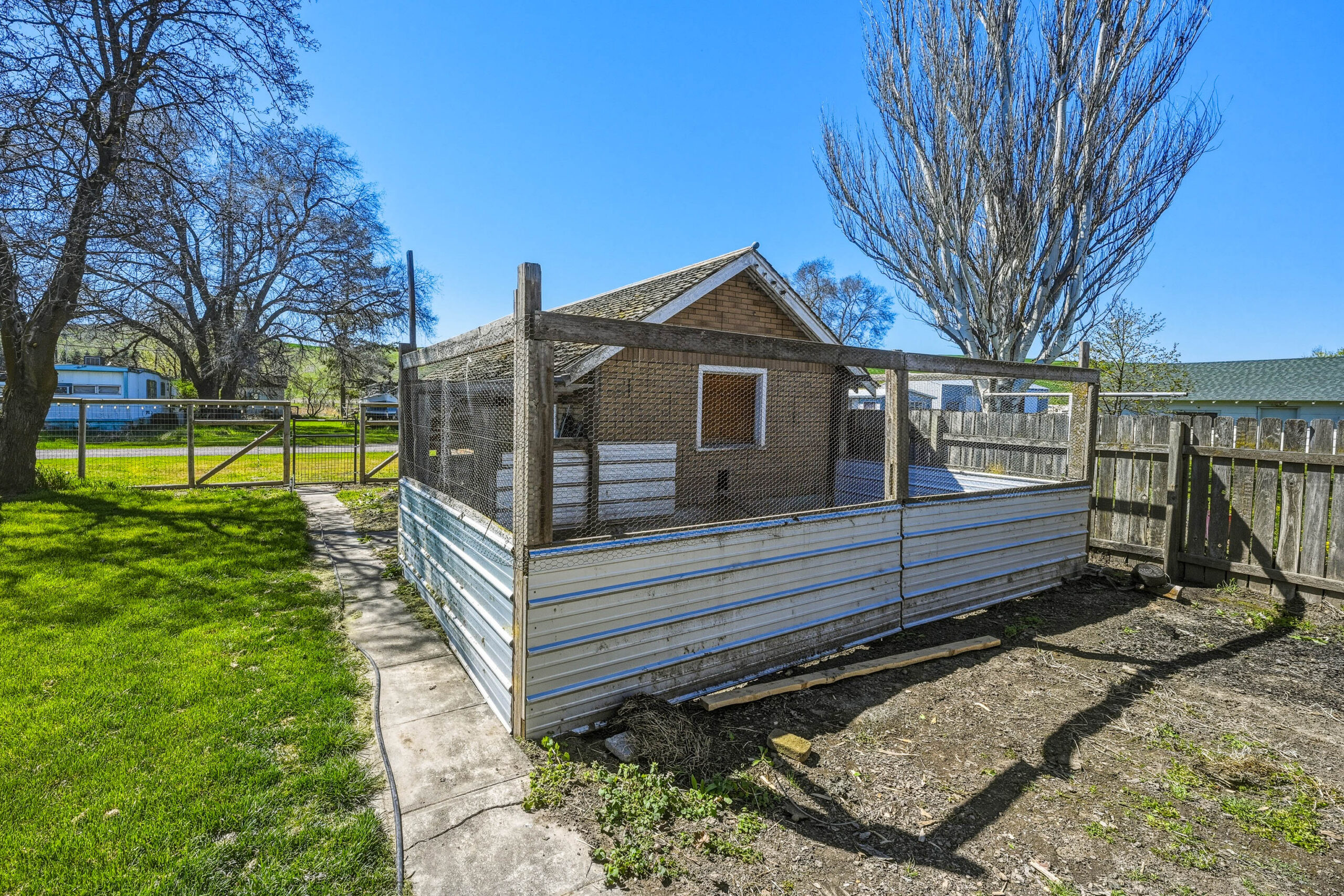 perennial flowers. There is a great chicken coop area for your chickens and a partially fenced-in yard that could easily be made to be