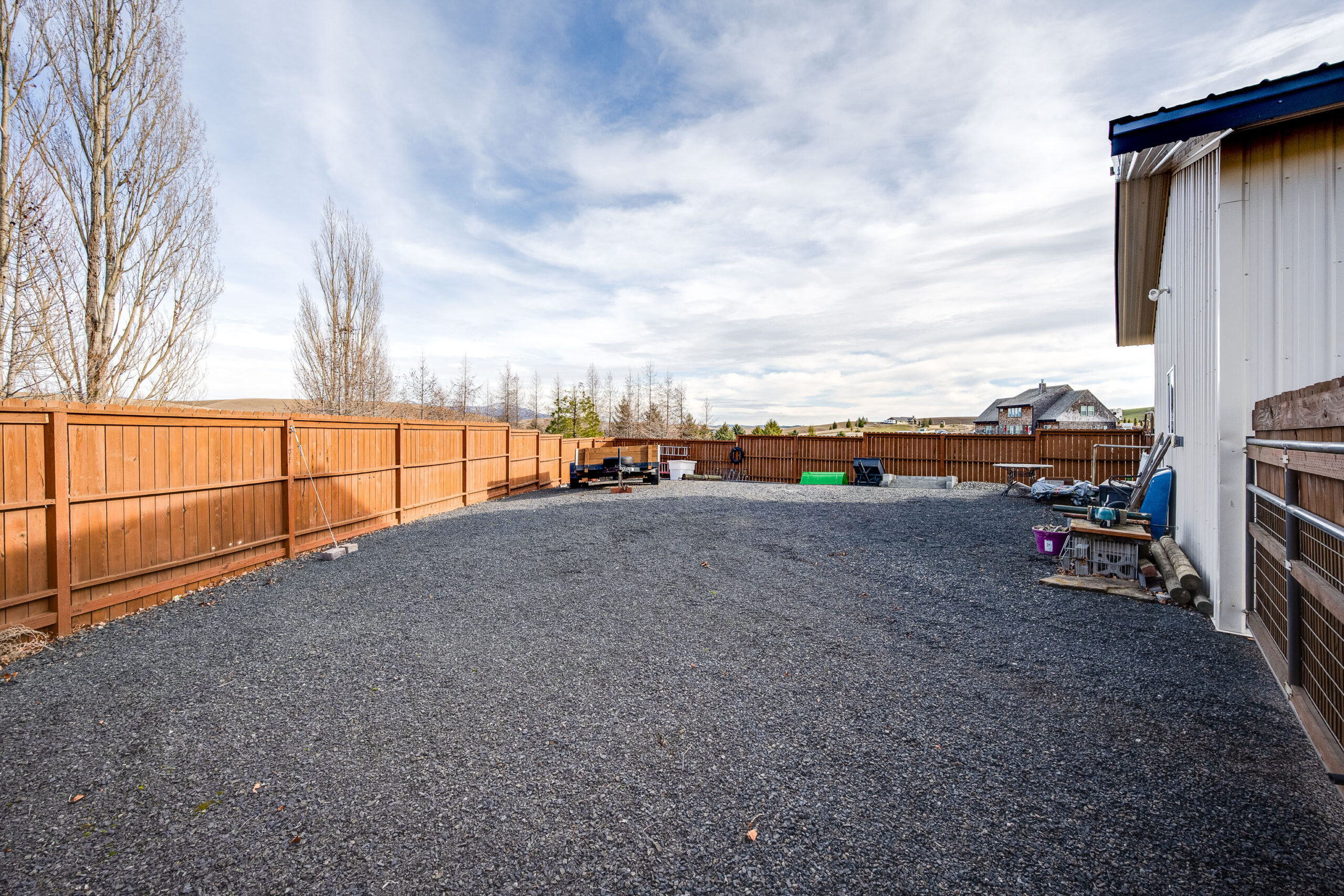 space for storing equipment there is a private gated space for storing a tractor or trailers. The yard is one of the nicer large well