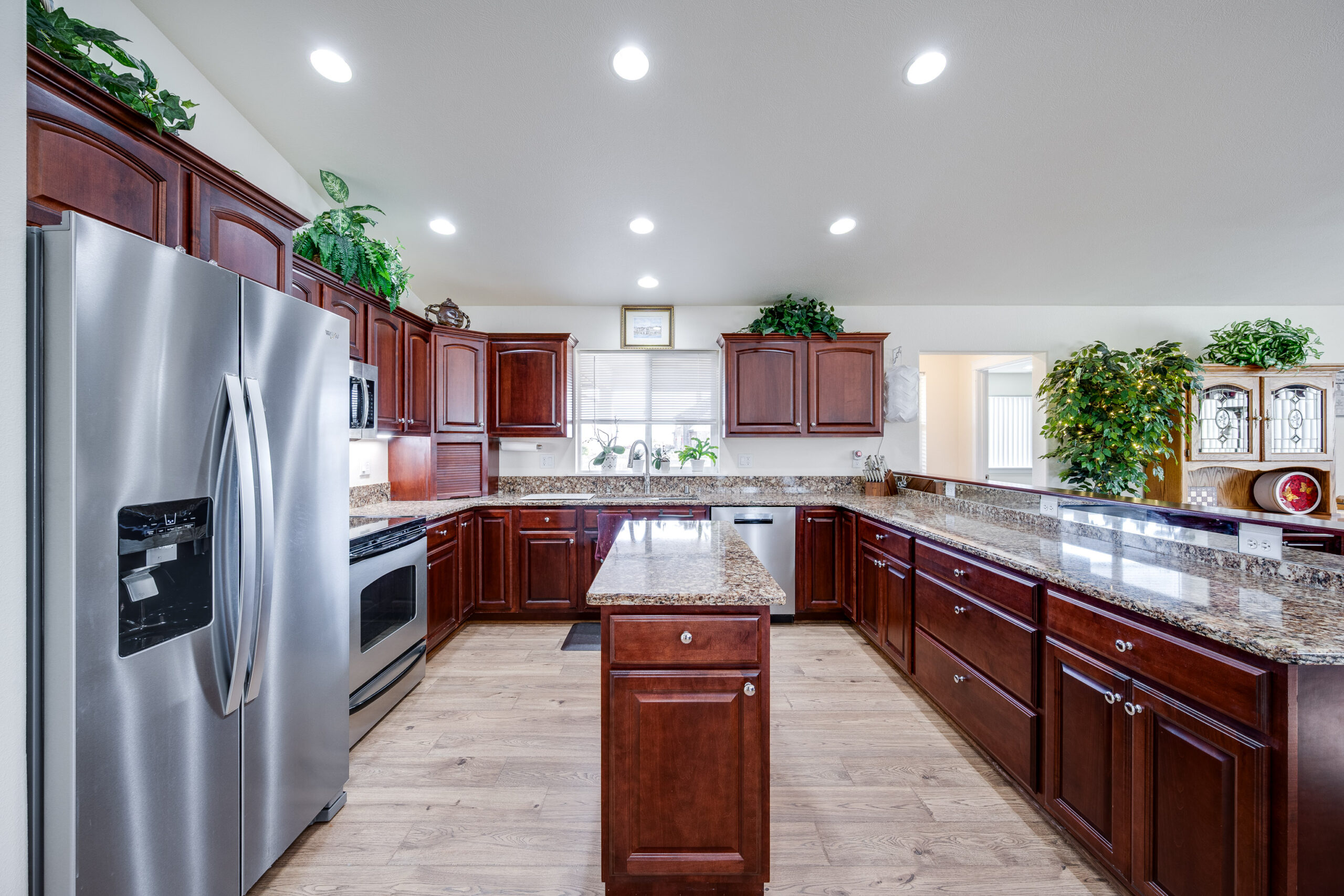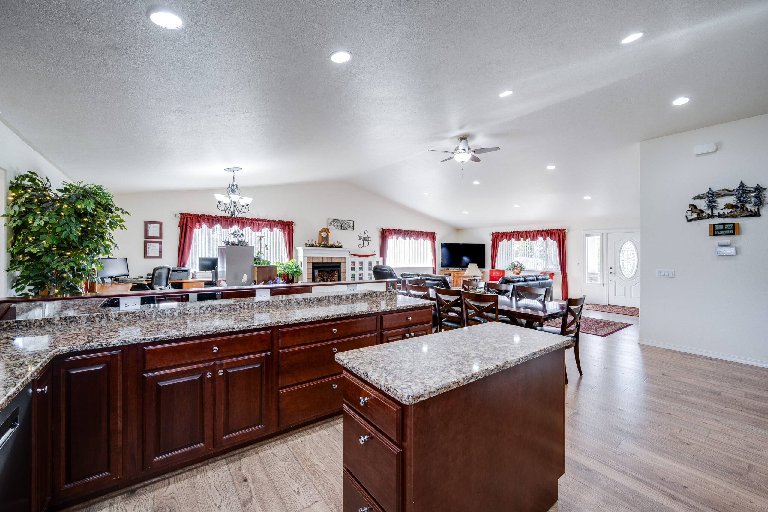 seamlessly into the expansive kitchen, the true heart of the home, designed for cooking, hosting, and gathering. The covered back