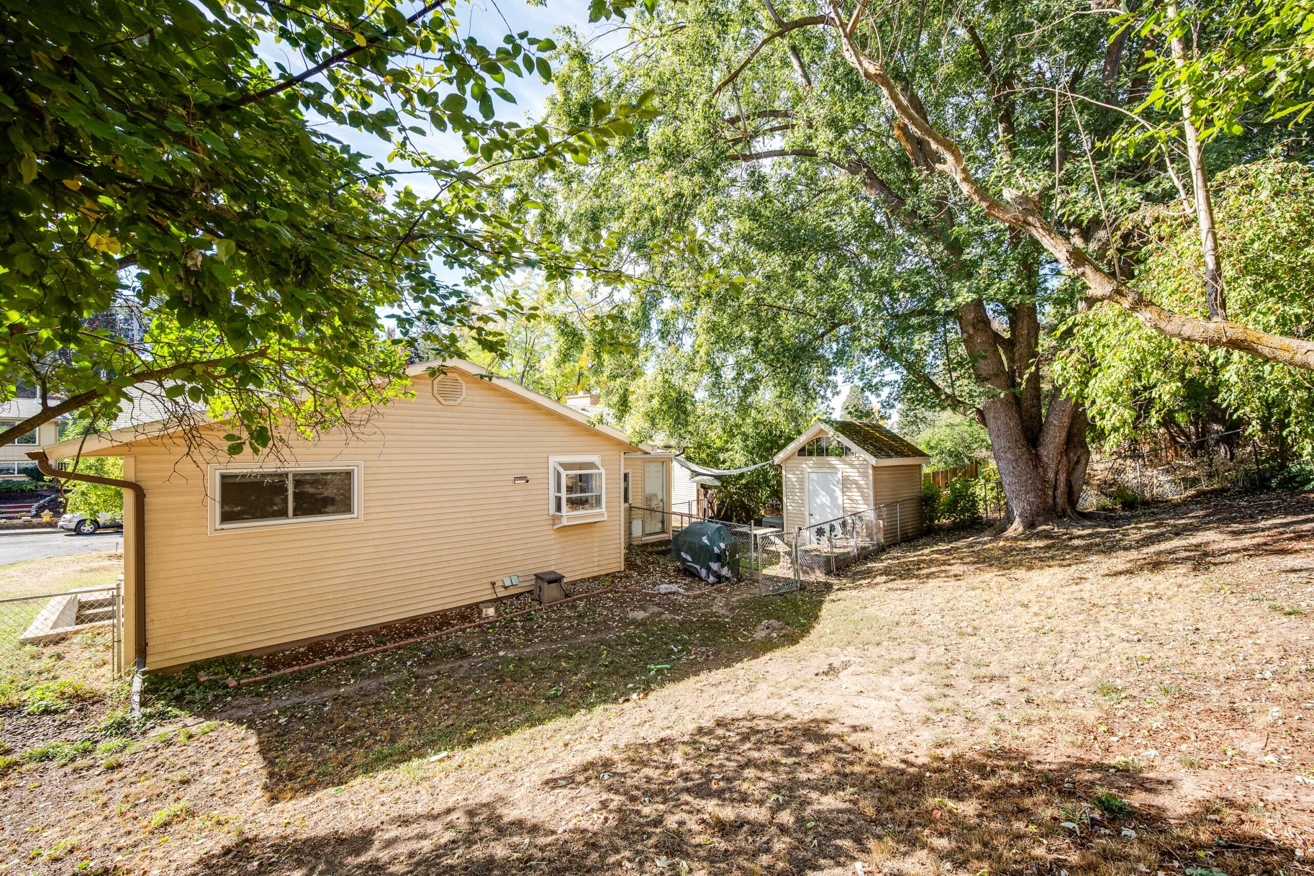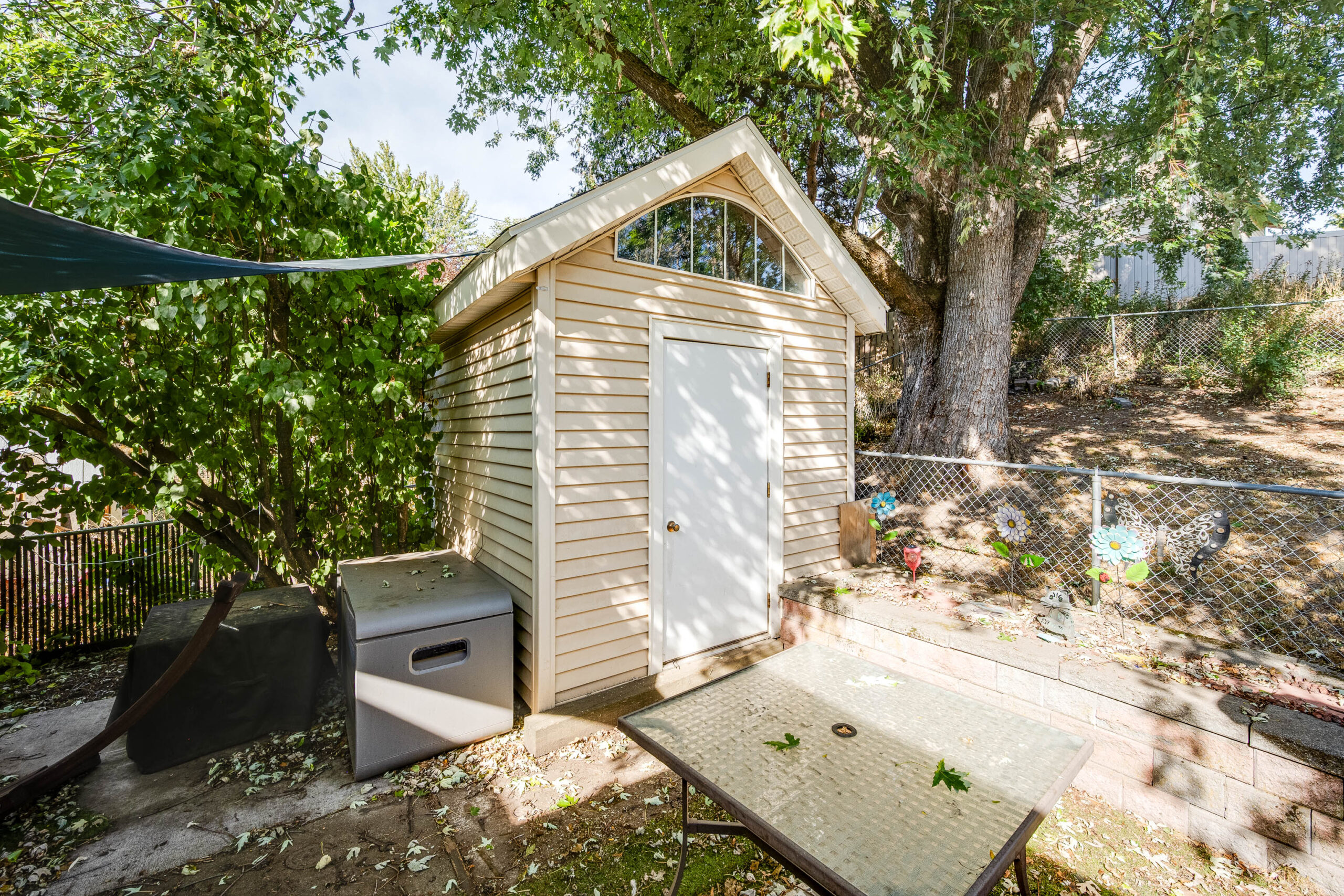 shed in the backyard, a garage, and a separate storage area with separate entrance that can be used for storage or a work shop.