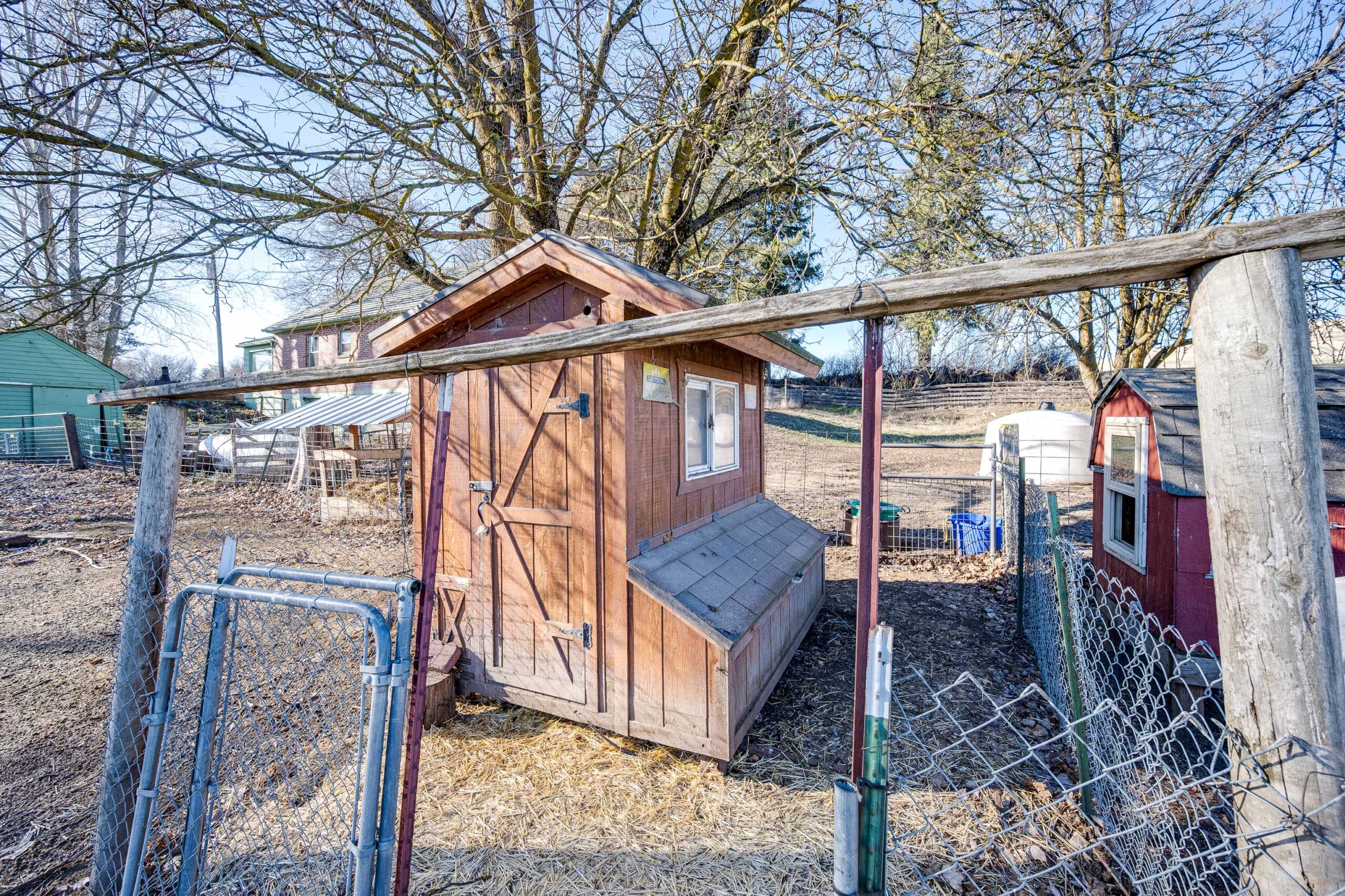 the wood and panel fencing. This Hobby Farm is ready for you and your animals with 3.44 acres that includes beautiful perennial flowers,